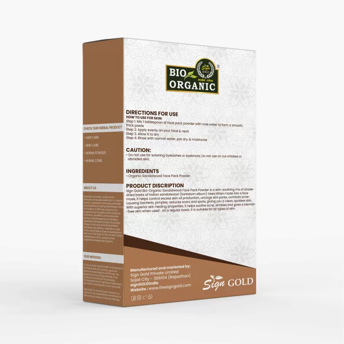 Our herbal sandalwood powder for skin is free from harmful chemicals, preservatives, and additives – making it completely safe for all skin types. Regular use of Sign Gold Sandalwood Powder as a natural face mask or homemade face pack helps improve skin tone, absorb excess oil, reduce tanning, and promote youthful, radiant skin.